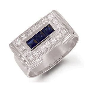 Кольцо из белого золота 585 пробы с 18 бриллиантами и 3 сапфирами