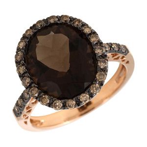 Кольцо из красного золота 585 пробы с 26 бриллиантами и 1 кварцем