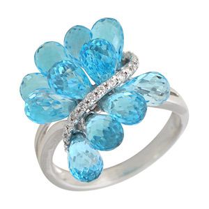 Кольцо из белого золота 585 пробы с 15 бриллиантами и 11 голубыми топазами !!!!33333!!!!!