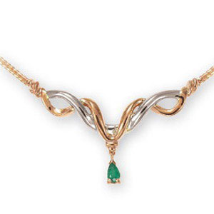Колье из комбинированного золота 585 пробы с 1 изумрудом