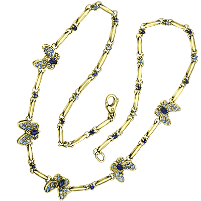 Легкое колье из белого золота 585 пробы с 5 сапфирами и 112 цветными сапфирами. Отличный подарок любой женщине.