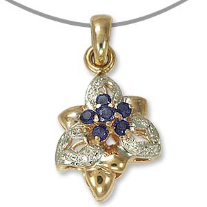 Подвеска из красного золота 585 пробы с 9 бриллиантами и 6 сапфирами