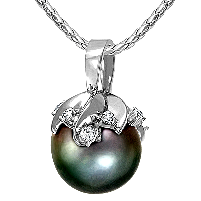 Очень красивая подвеска в виде ягодки - черной жемчужины оправленной белым золотом 585 пробы лепестков с бриллиантовой росой на лепестках. Очаровательный подарок любой женщине.