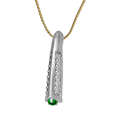 Необычная подвеска из белого золота 585 пробы с 14 бриллиантами и 1 изумрудом.