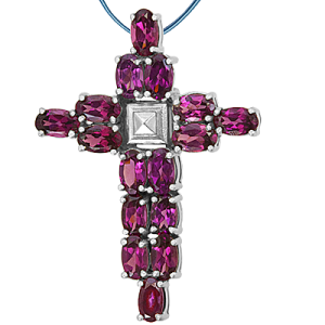 Подвеска в виде креста из серебра 925 пробы с 16 гранатами.