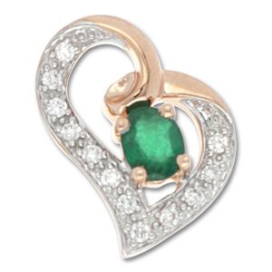 Подвеска из комбинированного золота 585 пробы с 12 бриллиантами и 1 изумрудом