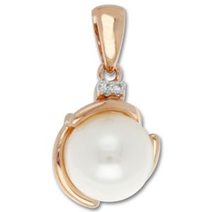 Подвеска из красного золота 585 пробы с 2 бриллиантами и 1 белой жемчужиной