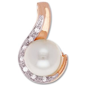 Подвеска из красного золота 585 пробы с 7 бриллиантами и 1 белой жемчужиной