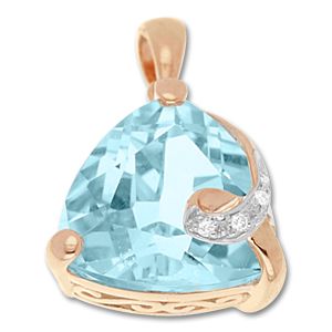 Подвеска из красного золота 585 пробы с 3 бриллиантами и 1 голубым топазом