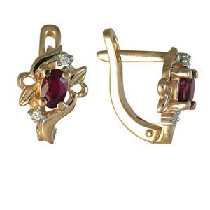 Серьги из красного золота 585 пробы с гранатом и цирконами