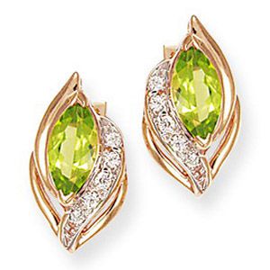 Серьги из красного золота 585 пробы с 2 гранатами и 10 цирконами
