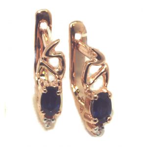 Серьги из красного золота 585 пробы с 2 изумрудами и 2 цирконами
