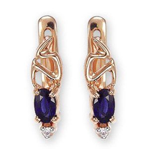 Серьги из красного золота 585 пробы с 2 сапфирами и 2 цирконами