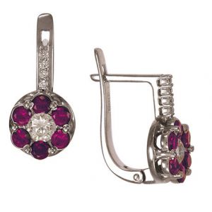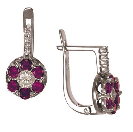 Серьги из белого золота 585 пробы с 10 бриллиантами и 12 рубинами