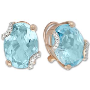 Серьги из красного золота 585 пробы с 2 голубыми топазами и 20 цирконами !!!!33333!!!!!