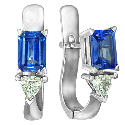 Серьги из белого золота 750 пробы с 2 бриллиантами и 2 сапфирами
