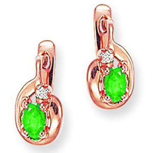 Серьги из красного золота 585 пробы с 2 изумрудами и 2 цирконами