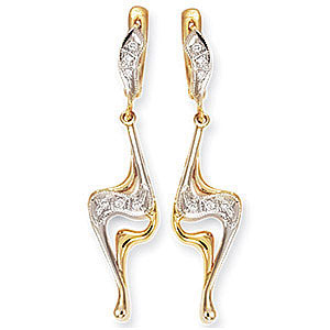 Очаровательные серьги из комбинированного золота 585 пробы с 12 бриллиантами. Изумительный подарок любой женщине.