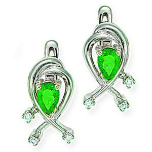 Серьги из белого золота 585 пробы с 6 бриллиантами и 2 изумрудами