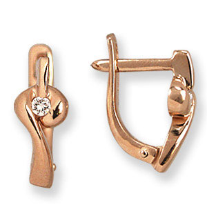 Серьги из красного золота 585 пробы с 2 бриллиантами