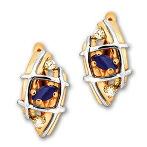 Серьги из комбинированного золота 585 пробы с 4 бриллиантами и 2 сапфирами. Очаровательный подарок любой женщине.
