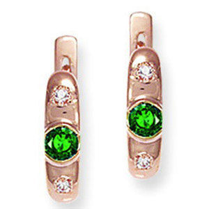 Серьги из красного золота 585 пробы с 2 изумрудами и 4 цирконами