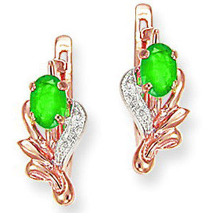 Серьги из красного золота 585 пробы с 2 изумрудами и 2 циркнами