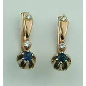 Серьги из комбинированного золота 585 пробы с 6 бриллиантами