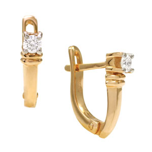 Серьги из красного золота 585 пробы с 2 бриллиантами