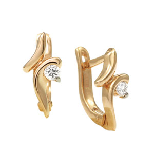 Серьги из красного золота 585 пробы с 2 бриллиантами