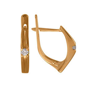 Серьги из красного золота 585 пробы с 2 бриллиантами