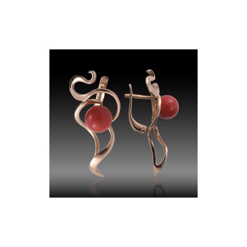 Серьги из красного золота 585 пробы с кораллами !!!!33333!!!!!