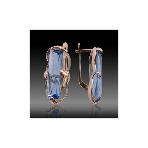 Серьги из красного золота 585 пробы с 2 голубыми топазами !!!!33333!!!!!