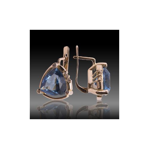 Серьги из красного золота 585 пробы с 2 голубыми топазами и 12 фианитами !!!!33333!!!!!
