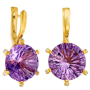 Необычайно красивые серьги из красного золота 585 пробы с 2 аметистами. Превосходный подарок любой женщине.
