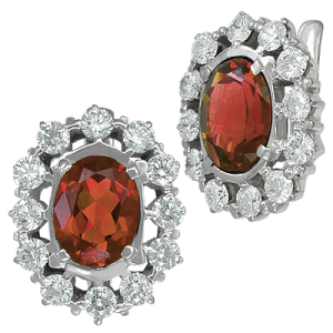 Прекрасные серьги из белого золота 750 пробы с 24 бриллиантами и 2 турмалинами. Красивый подарок любой женщине.