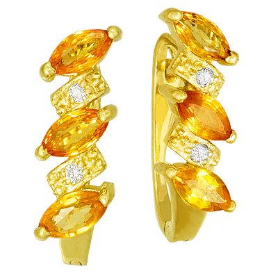Очаровательные серьги из желтого золота 585 пробы с 4 брилиантами и 6 сапфирами. Превосходный подарок любой женщине.