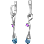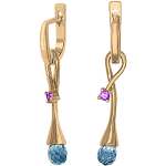 Очаровательные серьги из желтого золота 585 пробы с 2 цветными сапфирами и 2 голубыми топазами. Прекрасный подарок любой женщине.