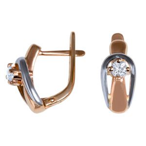 Серьги из комбинированного золота 585 пробы с бриллиантами