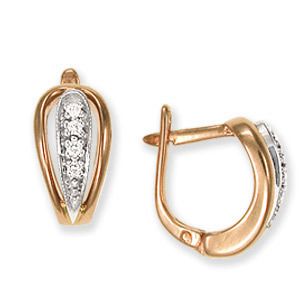 Серьги из комбинированного золота 585 пробы с 8 бриллиантами !!!!33333!!!!!