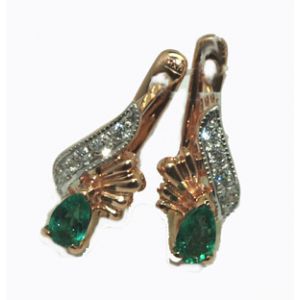 Серьги из красного золота 585 пробы с 2 сапфирами и 8 цирконами