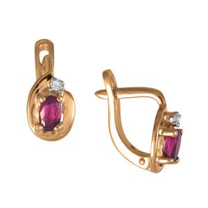 Серьги из красного золота 585 пробы с рубинами и цирконами