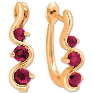 Серьги из красного золота 585 пробы с 6 рубинами