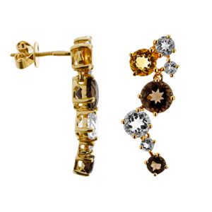 Пусеты из желтого золота 585 пробы с 4 кварцами, 2 цитринами, 4 аметистами и 4 топазами