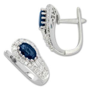 Серьги из белого золота 585 пробы с 54 бриллиантами и 2 сапфирами
