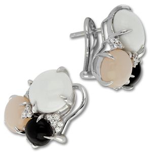 Серьги из белого золота 585 пробы с 30 бриллиантами, 2 опалами и 4 агатами