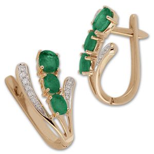 Серьги из красного золота 585 пробы с 20 бриллиантами и 6 изумрудами