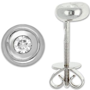 Пусеты из белого золота 585 пробы с 2 бриллиантами