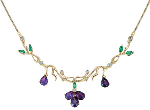 Колье с бриллиантами,изумрудами и аметистами