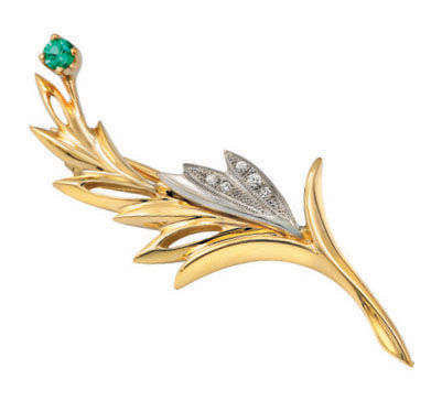 Брошь с бриллиантами и изумрудом